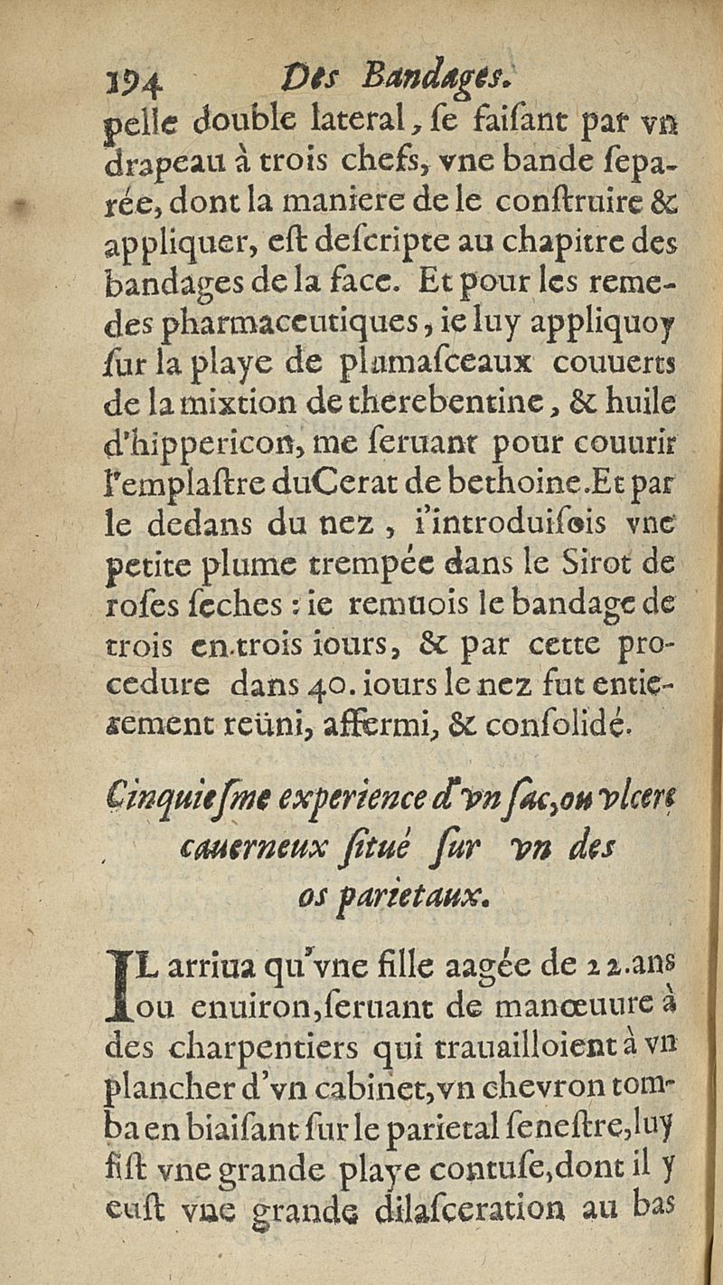Traicté chirurgical des bandes, laqs emplatres, compresses, astelles et des Bandages en particulier plus les observations des cures facites,...