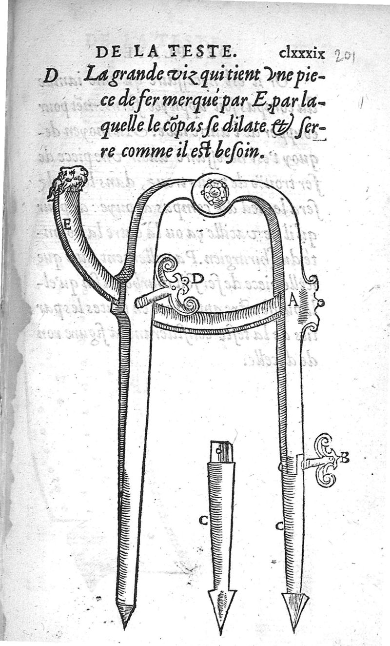 La Methode Curative des Playes et Fracture de la teste humaine. Avec les pourtraits des Instruments necessaires pour la curation d’icelles. Par M. Ambroise Paré Chirurgien ordinaire du Roy, et Juré à Paris,