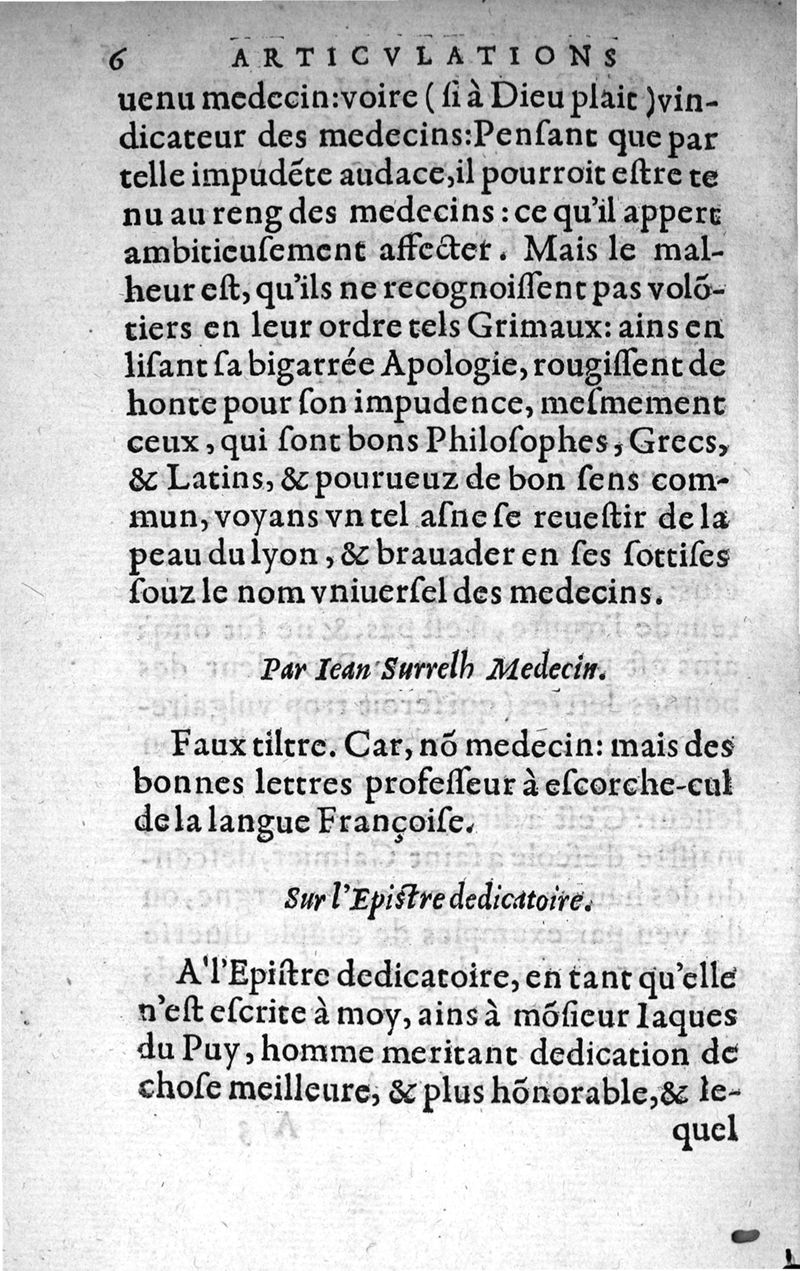 Les articulations de Pierre Brallier apothicaire de Lyon, sur l'apologie de Jean Surrelh médecin à S. Galmier