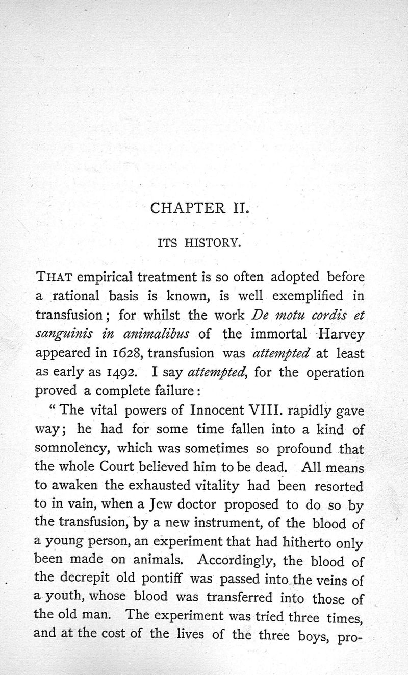 Transfusion, its history, indications and modes of application