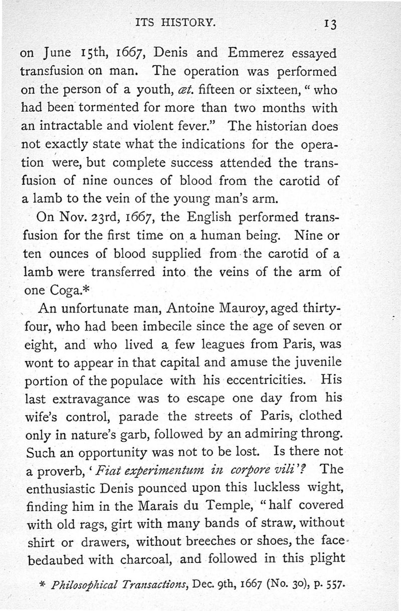 Transfusion, its history, indications and modes of application