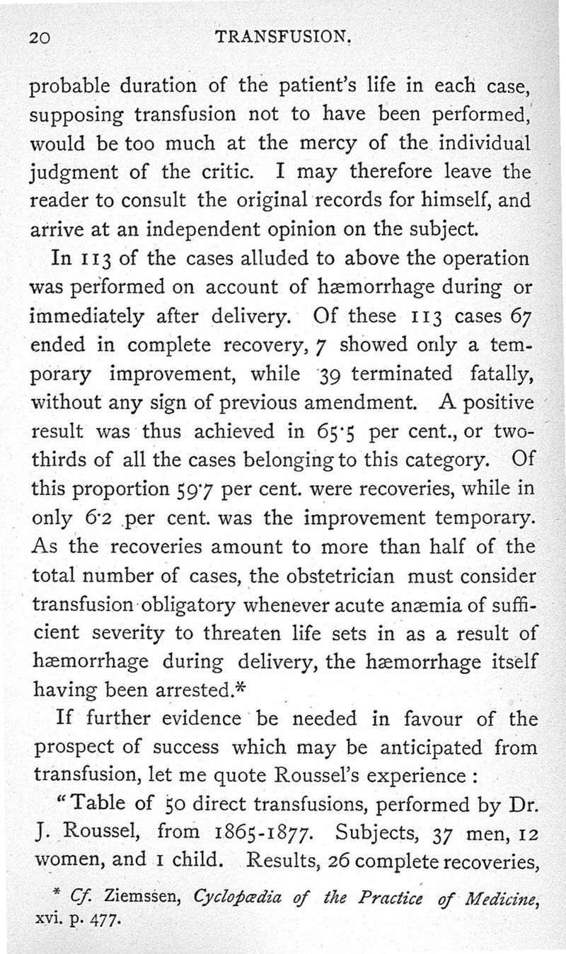 Transfusion, its history, indications and modes of application