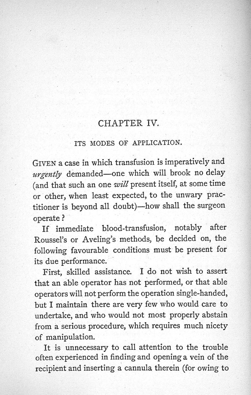 Transfusion, its history, indications and modes of application