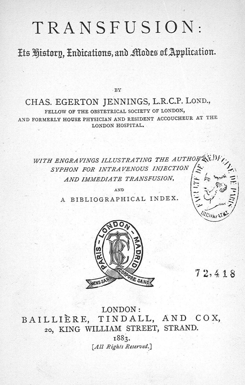 Transfusion, its history, indications and modes of application