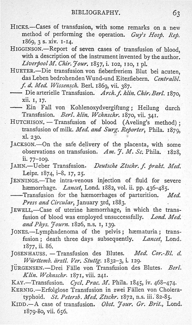 Transfusion, its history, indications and modes of application