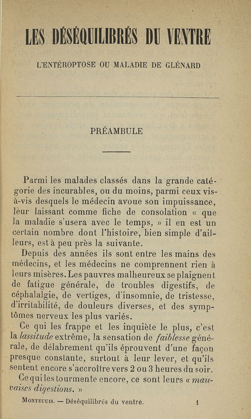 Les déséquilibrés du ventre. L'entéroptose ou maladie de Glénard