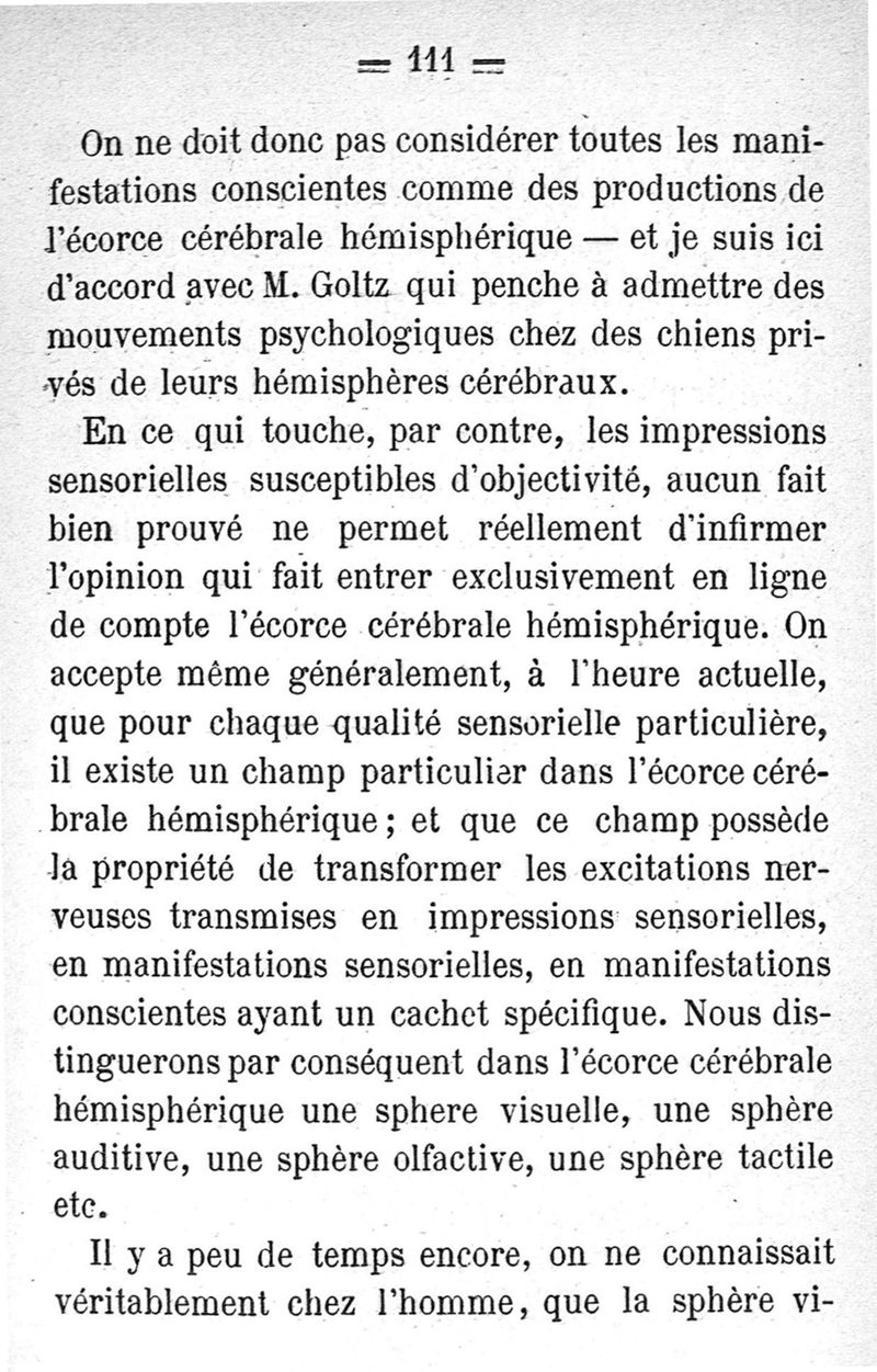 Études sur le cerveau. I. Frontières de la folie. II. Centres cérébraux de l'association. III. Localisations sensorielles. Traduction L. Levi