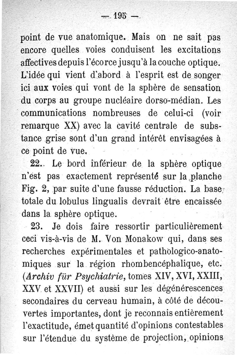 Études sur le cerveau. I. Frontières de la folie. II. Centres cérébraux de l'association. III. Localisations sensorielles. Traduction L. Levi
