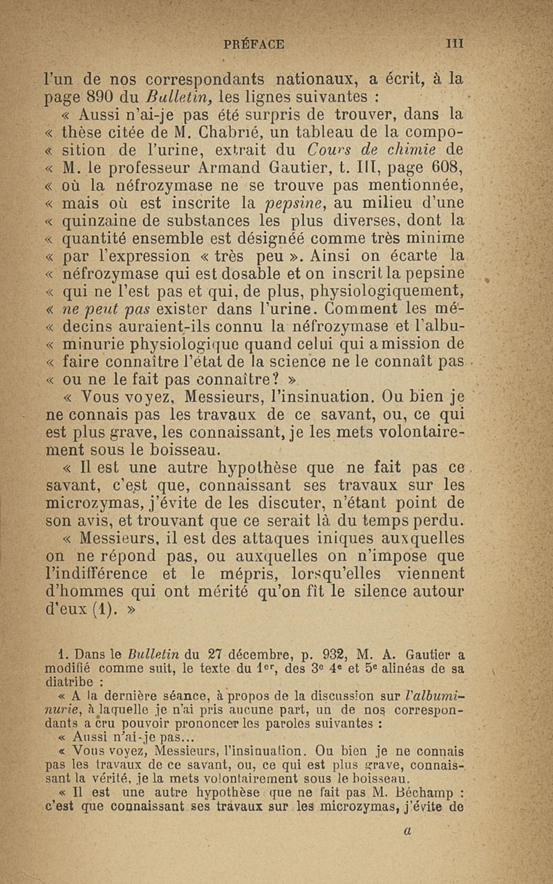 Microzymas et microbes : communications à l'Académie de médecine dans les discussions sur l'aigrissement et la coagulation spontanés du lait de vache,la septicémie puerpérale, la pleurésie, l'albuminurie