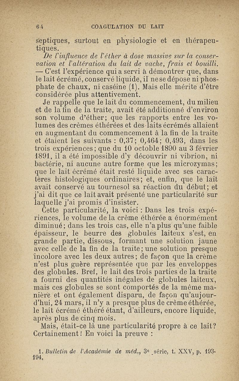 Microzymas et microbes : communications à l'Académie de médecine dans les discussions sur l'aigrissement et la coagulation spontanés du lait de vache,la septicémie puerpérale, la pleurésie, l'albuminurie