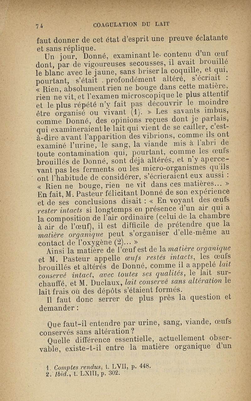 Microzymas et microbes : communications à l'Académie de médecine dans les discussions sur l'aigrissement et la coagulation spontanés du lait de vache,la septicémie puerpérale, la pleurésie, l'albuminurie