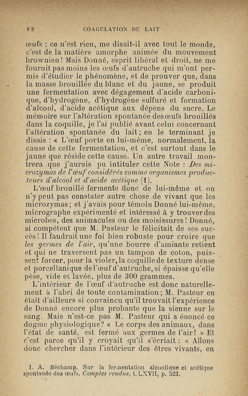 Microzymas et microbes : communications à l'Académie de médecine dans les discussions sur l'aigrissement et la coagulation spontanés du lait de vache,la septicémie puerpérale, la pleurésie, l'albuminurie