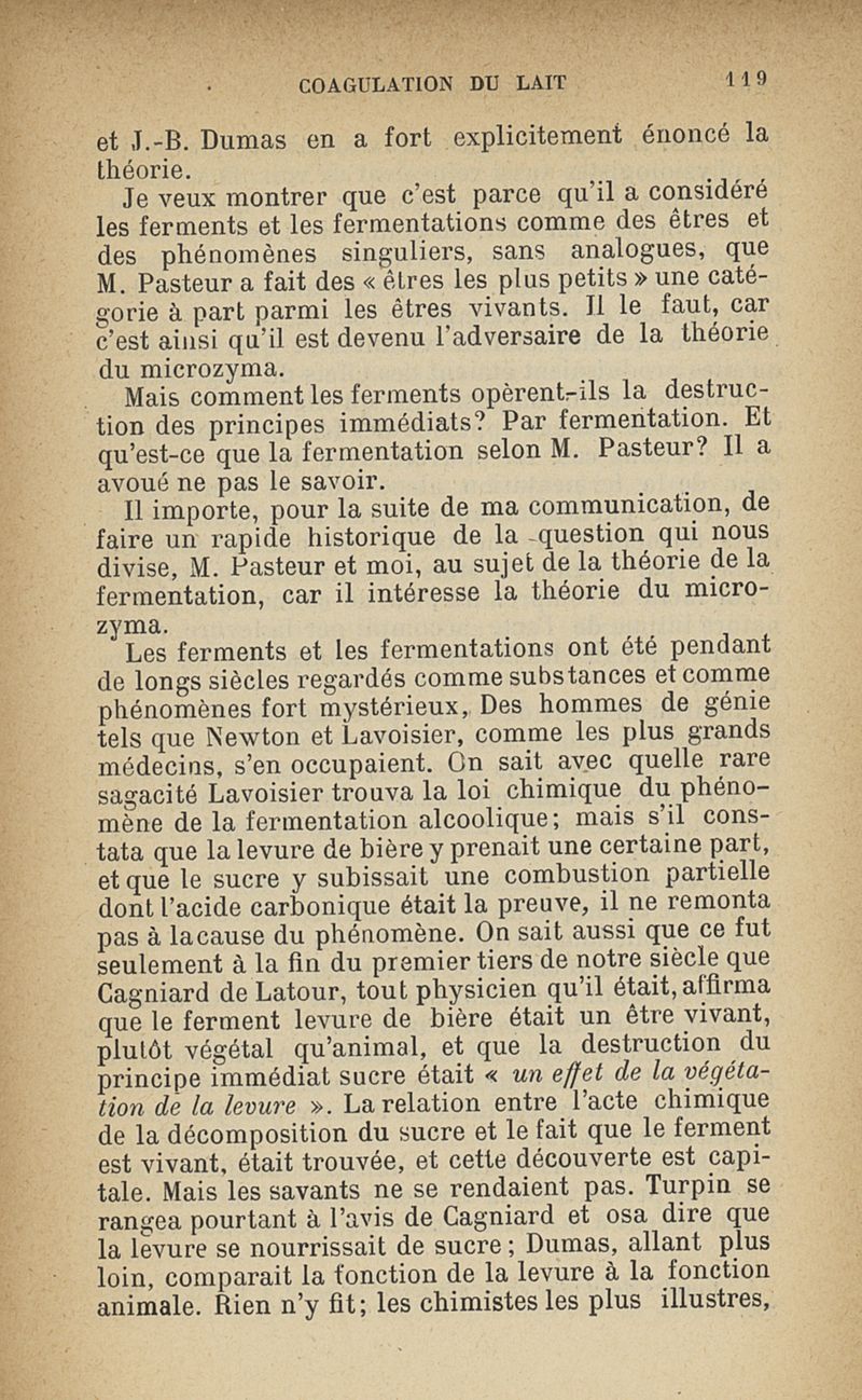 Microzymas et microbes : communications à l'Académie de médecine dans les discussions sur l'aigrissement et la coagulation spontanés du lait de vache,la septicémie puerpérale, la pleurésie, l'albuminurie