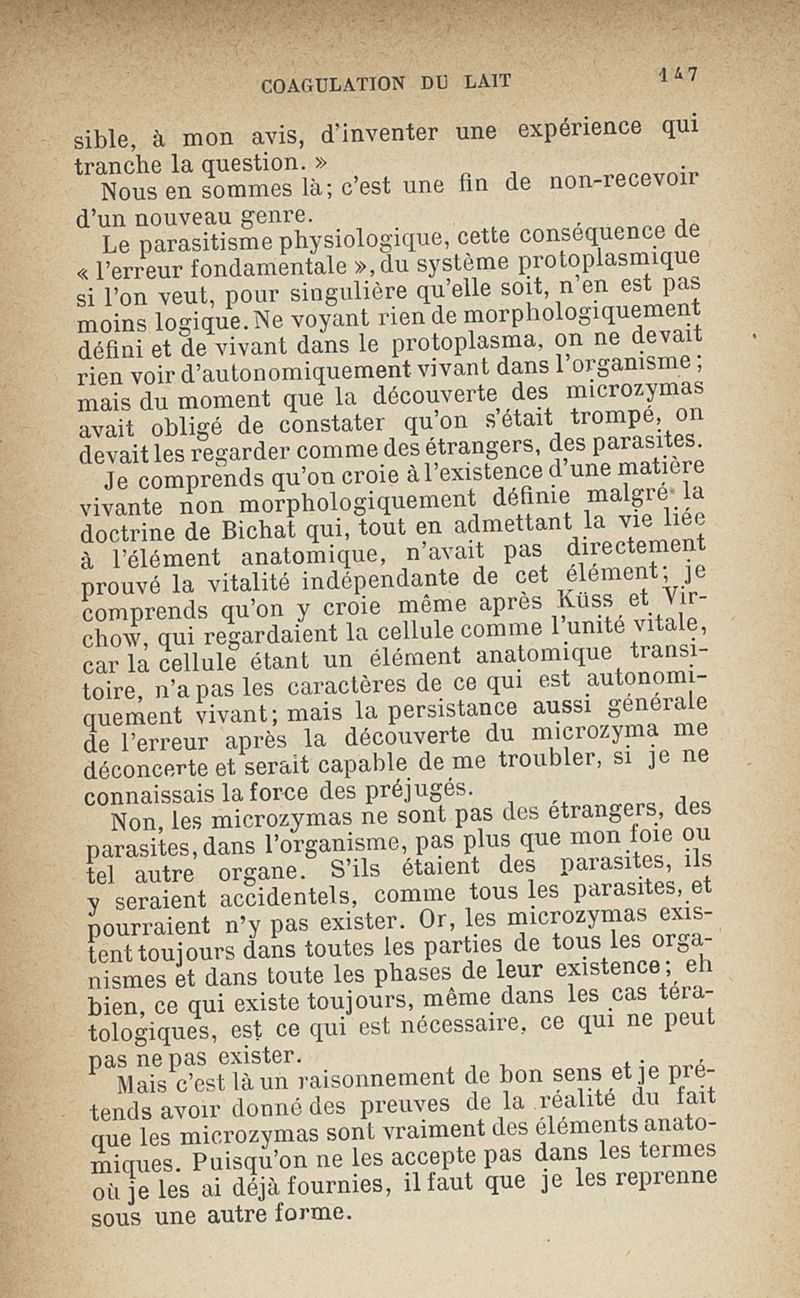 Microzymas et microbes : communications à l'Académie de médecine dans les discussions sur l'aigrissement et la coagulation spontanés du lait de vache,la septicémie puerpérale, la pleurésie, l'albuminurie
