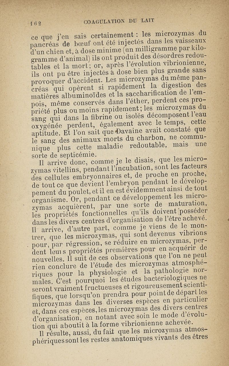 Microzymas et microbes : communications à l'Académie de médecine dans les discussions sur l'aigrissement et la coagulation spontanés du lait de vache,la septicémie puerpérale, la pleurésie, l'albuminurie