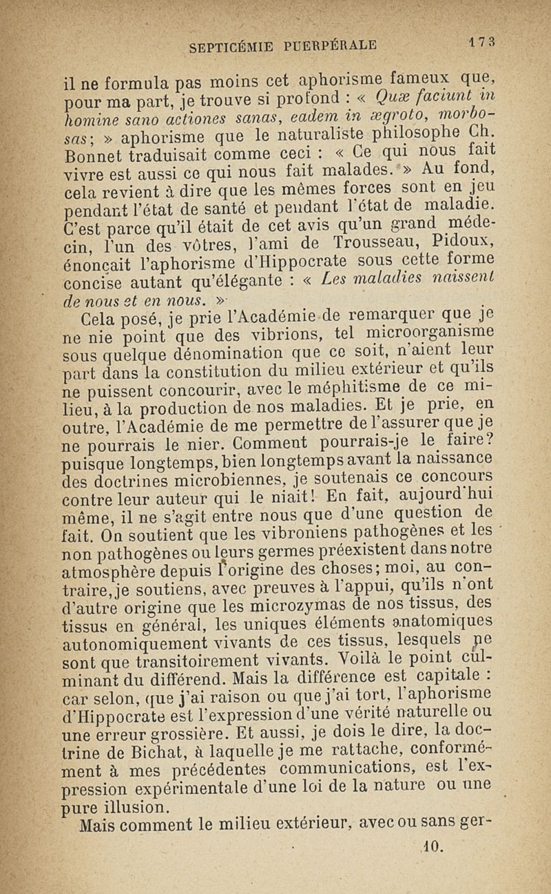 Microzymas et microbes : communications à l'Académie de médecine dans les discussions sur l'aigrissement et la coagulation spontanés du lait de vache,la septicémie puerpérale, la pleurésie, l'albuminurie