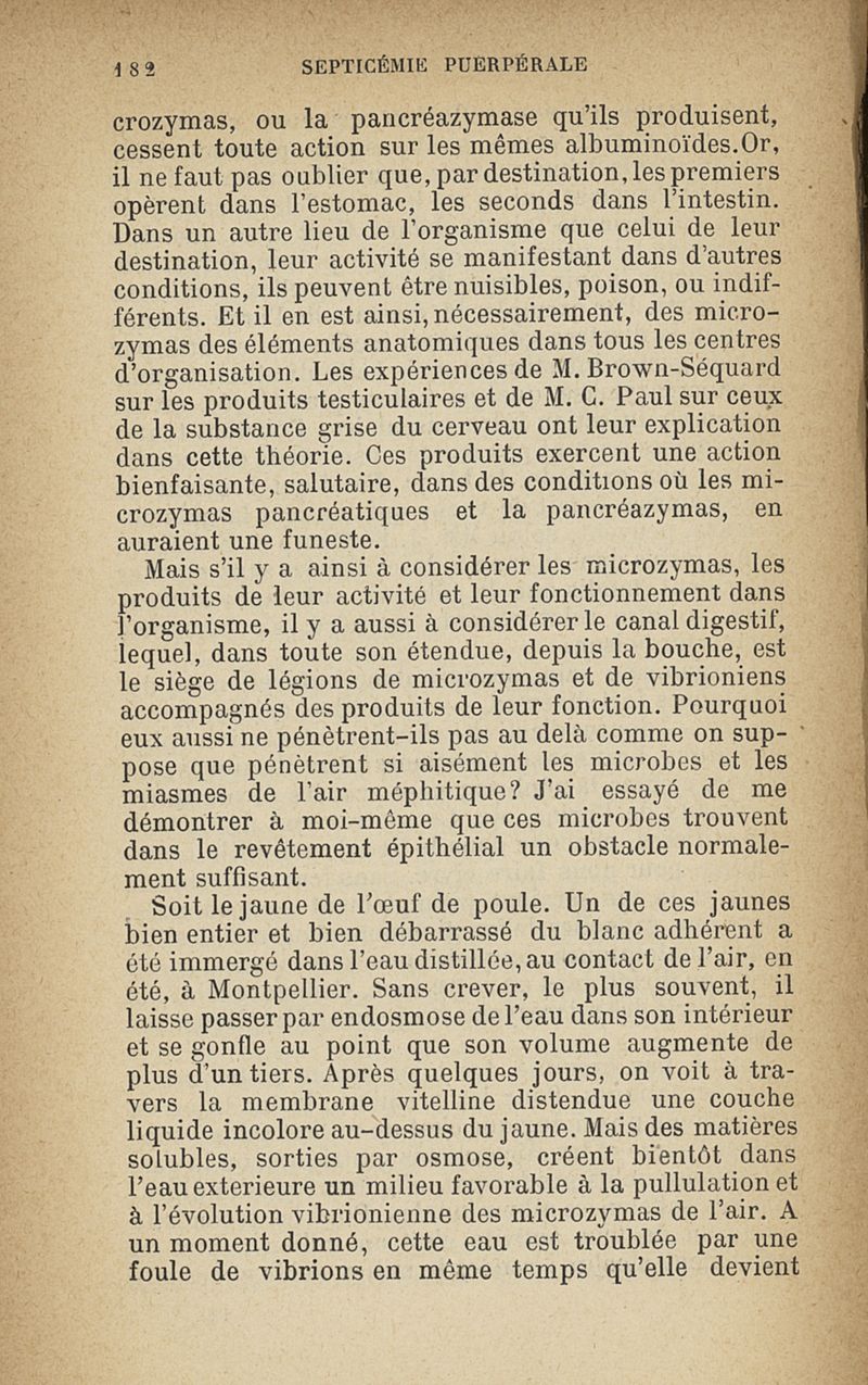 Microzymas et microbes : communications à l'Académie de médecine dans les discussions sur l'aigrissement et la coagulation spontanés du lait de vache,la septicémie puerpérale, la pleurésie, l'albuminurie