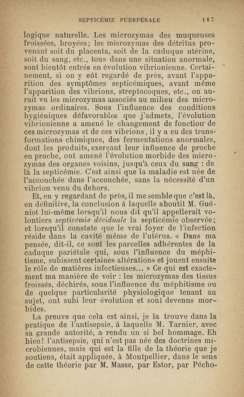 Microzymas et microbes : communications à l'Académie de médecine dans les discussions sur l'aigrissement et la coagulation spontanés du lait de vache,la septicémie puerpérale, la pleurésie, l'albuminurie