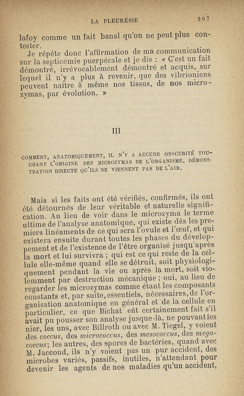 Microzymas et microbes : communications à l'Académie de médecine dans les discussions sur l'aigrissement et la coagulation spontanés du lait de vache,la septicémie puerpérale, la pleurésie, l'albuminurie