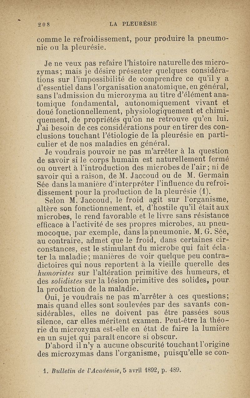 Microzymas et microbes : communications à l'Académie de médecine dans les discussions sur l'aigrissement et la coagulation spontanés du lait de vache,la septicémie puerpérale, la pleurésie, l'albuminurie