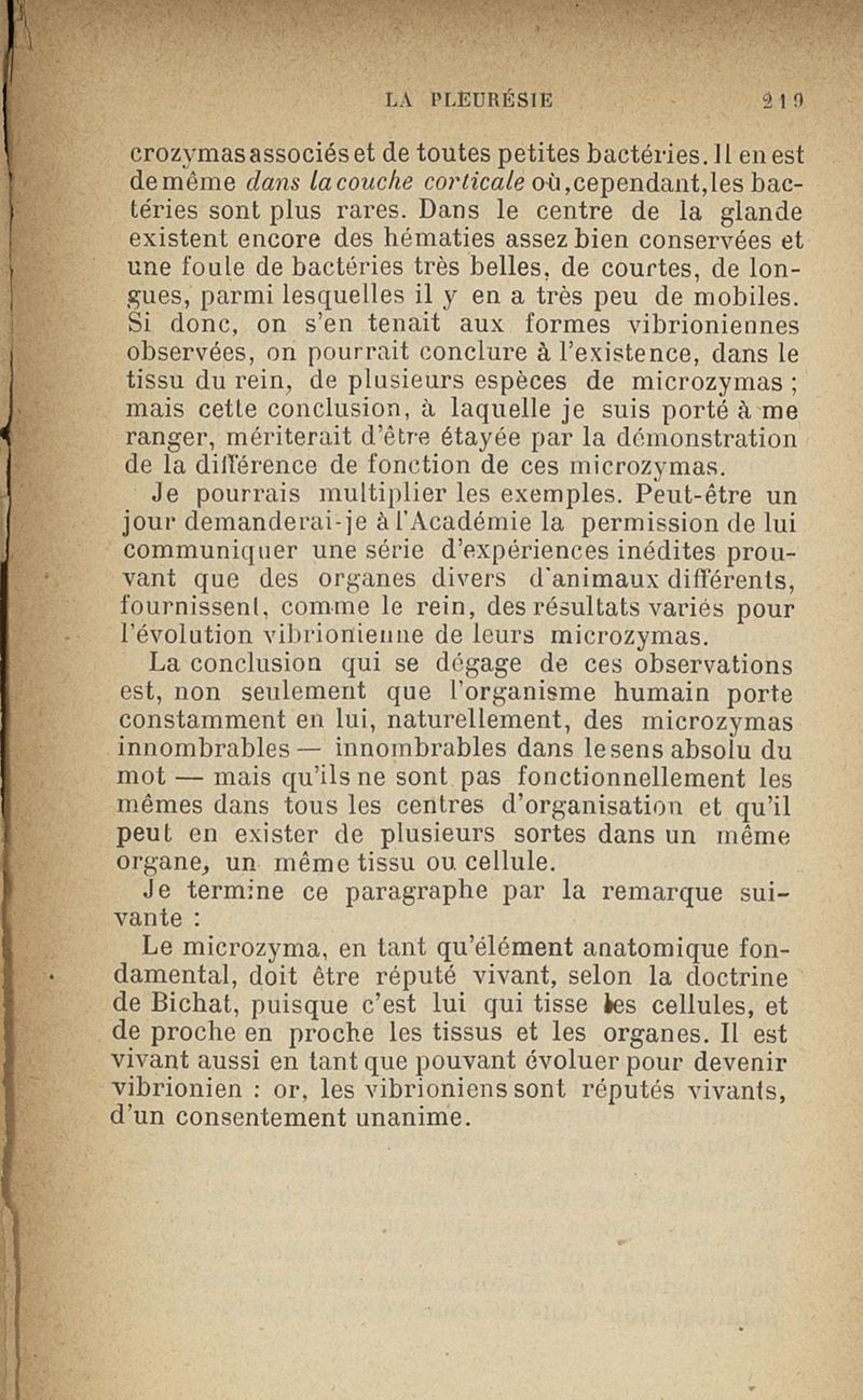 Microzymas et microbes : communications à l'Académie de médecine dans les discussions sur l'aigrissement et la coagulation spontanés du lait de vache,la septicémie puerpérale, la pleurésie, l'albuminurie