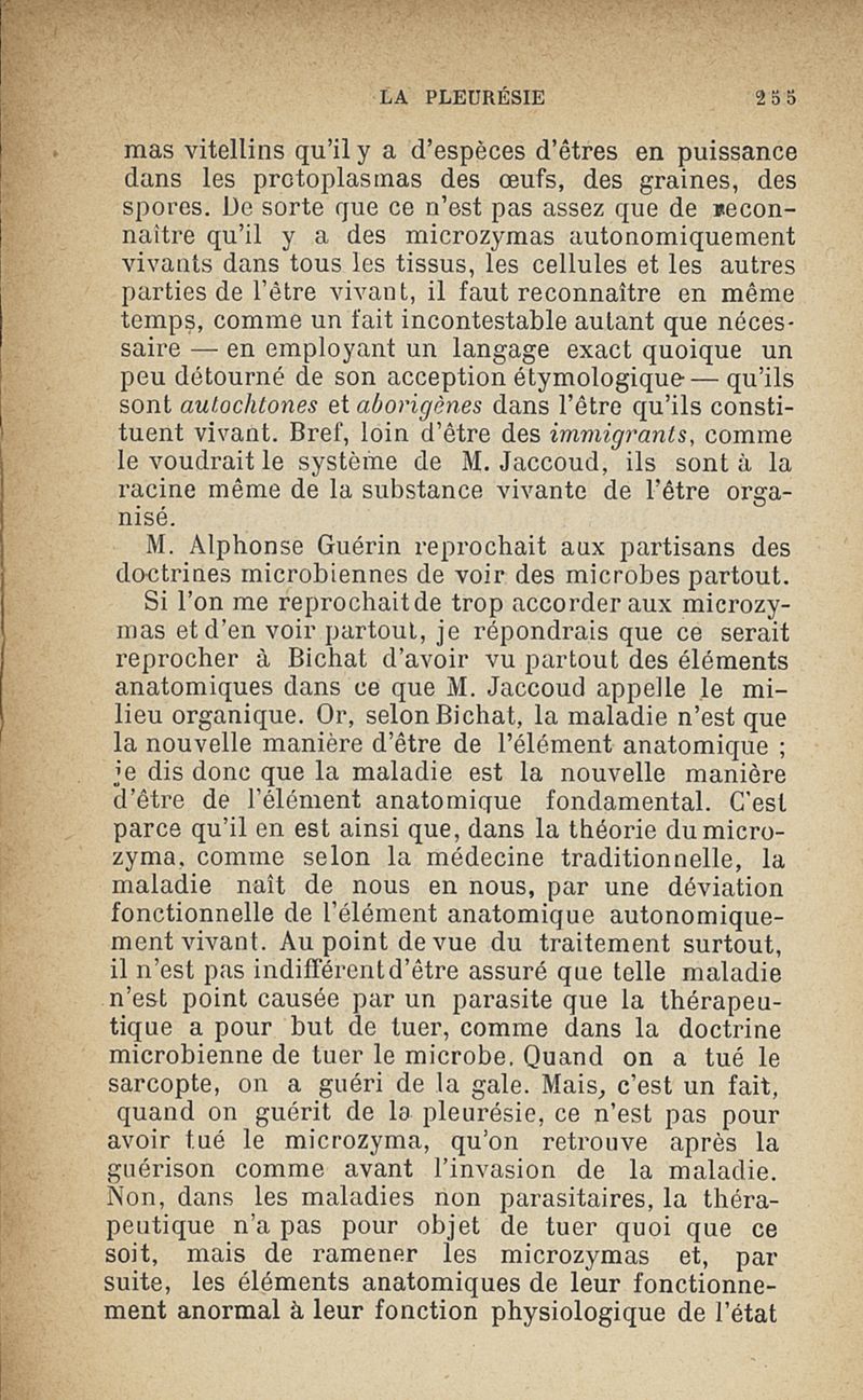 Microzymas et microbes : communications à l'Académie de médecine dans les discussions sur l'aigrissement et la coagulation spontanés du lait de vache,la septicémie puerpérale, la pleurésie, l'albuminurie