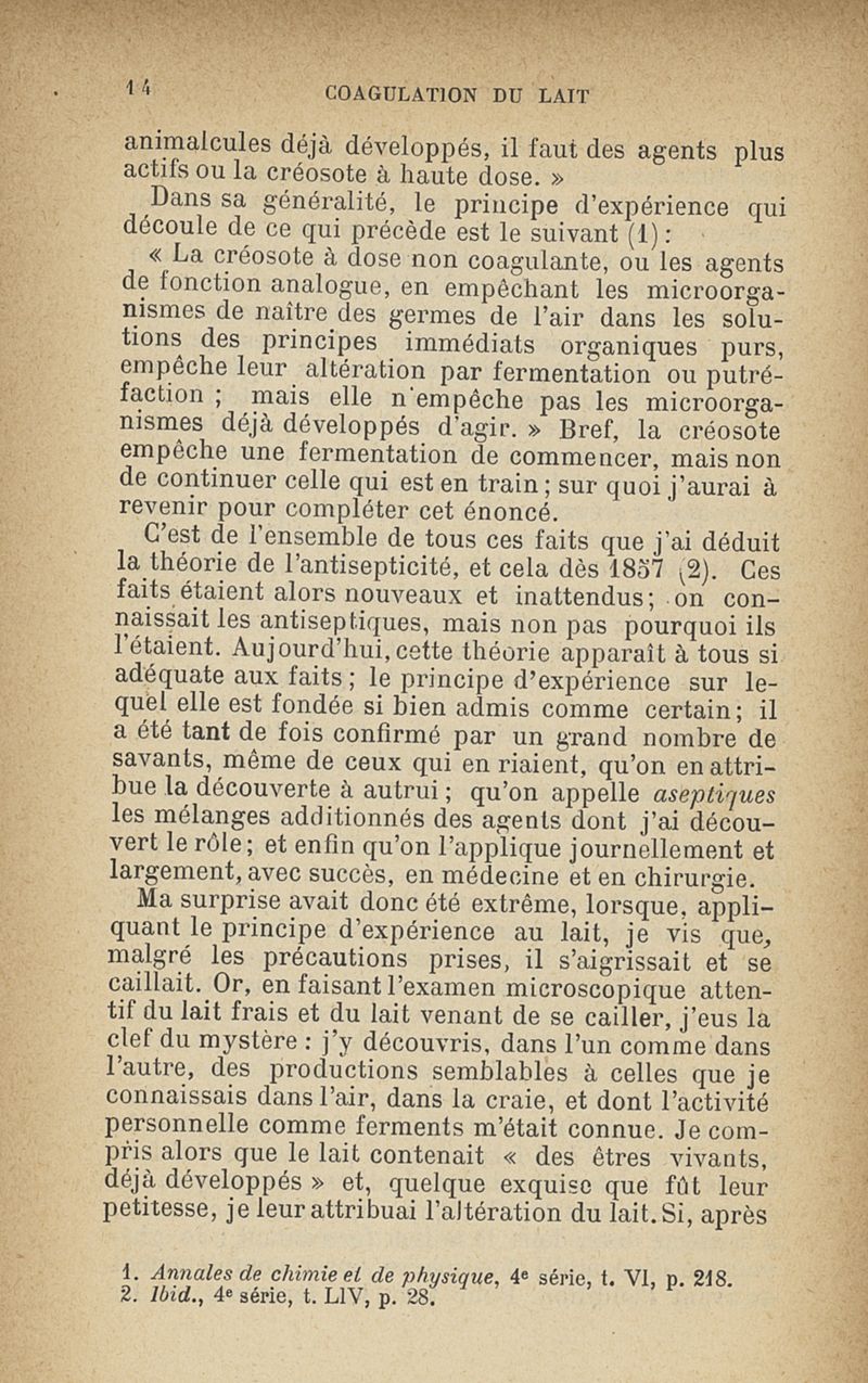 Microzymas et microbes : communications à l'Académie de médecine dans les discussions sur l'aigrissement et la coagulation spontanés du lait de vache,la septicémie puerpérale, la pleurésie, l'albuminurie