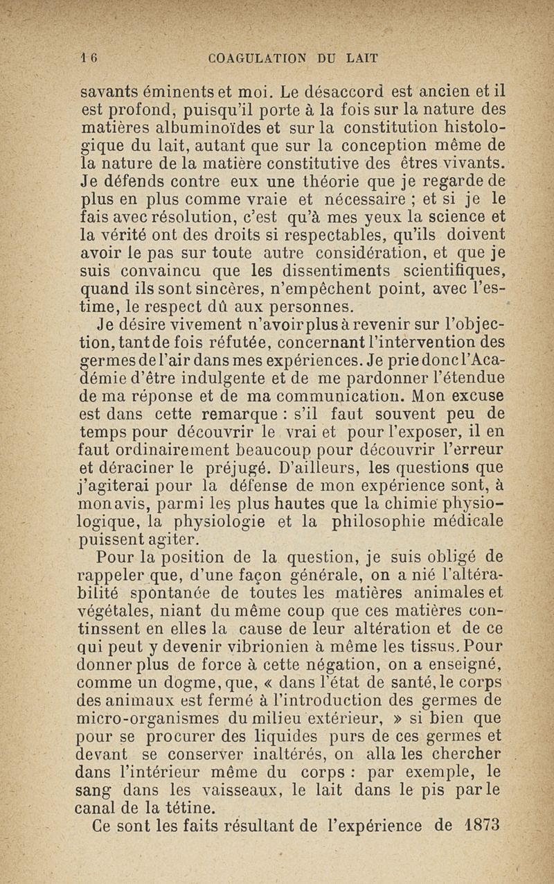 Microzymas et microbes : communications à l'Académie de médecine dans les discussions sur l'aigrissement et la coagulation spontanés du lait de vache,la septicémie puerpérale, la pleurésie, l'albuminurie