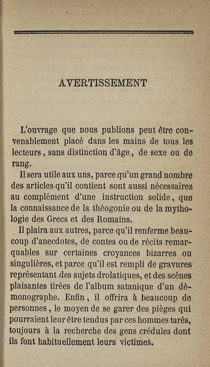 Le triple vocabulaire infernal, manuel du démonomane ou les ruses de l'enfer dévoilées