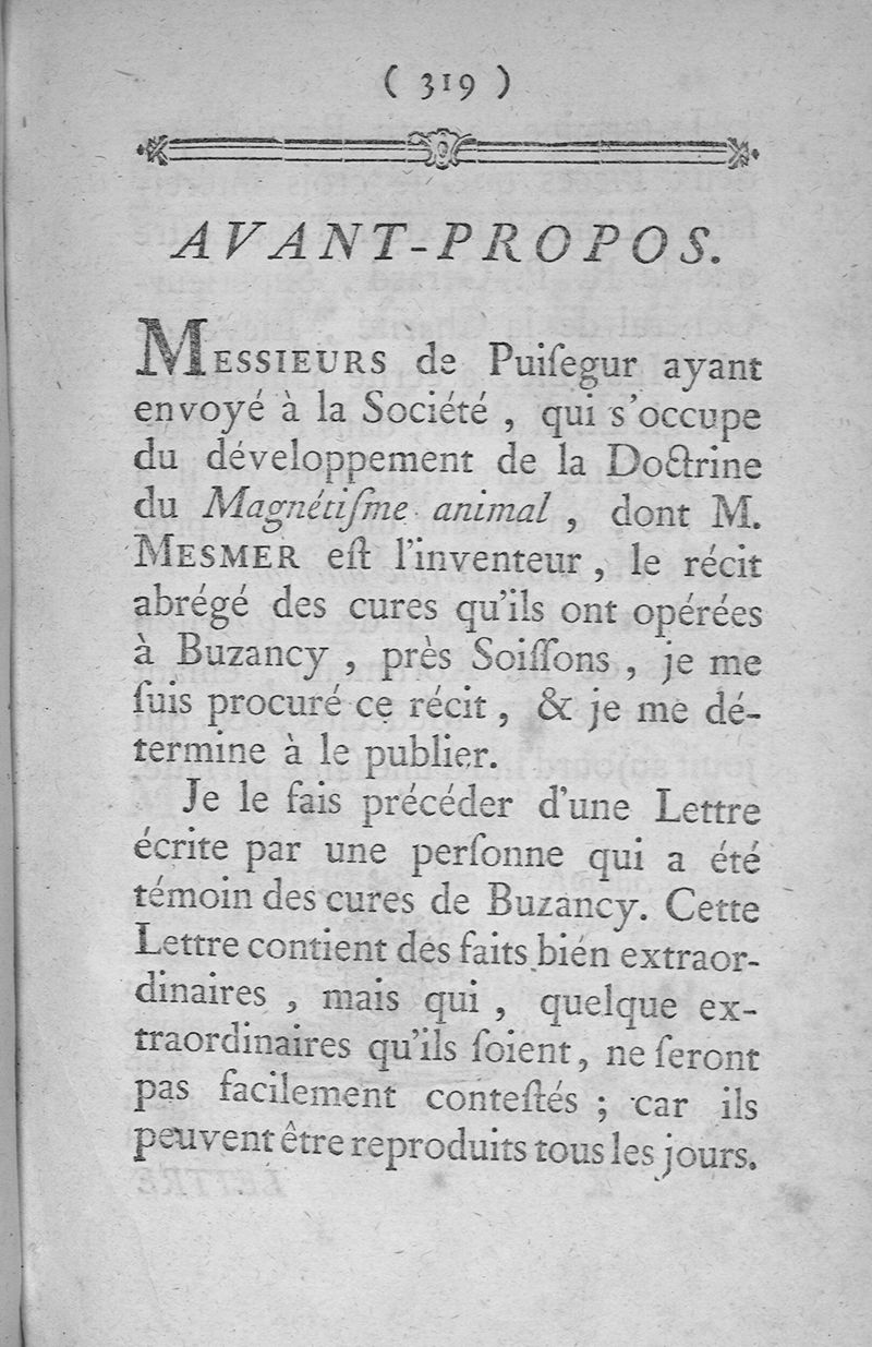 Recueil des pièces les plus intéressantes sur le magnétisme animal, dont le mémoire sur la découverte du magnétisme animal de M. F.A. Mesmer