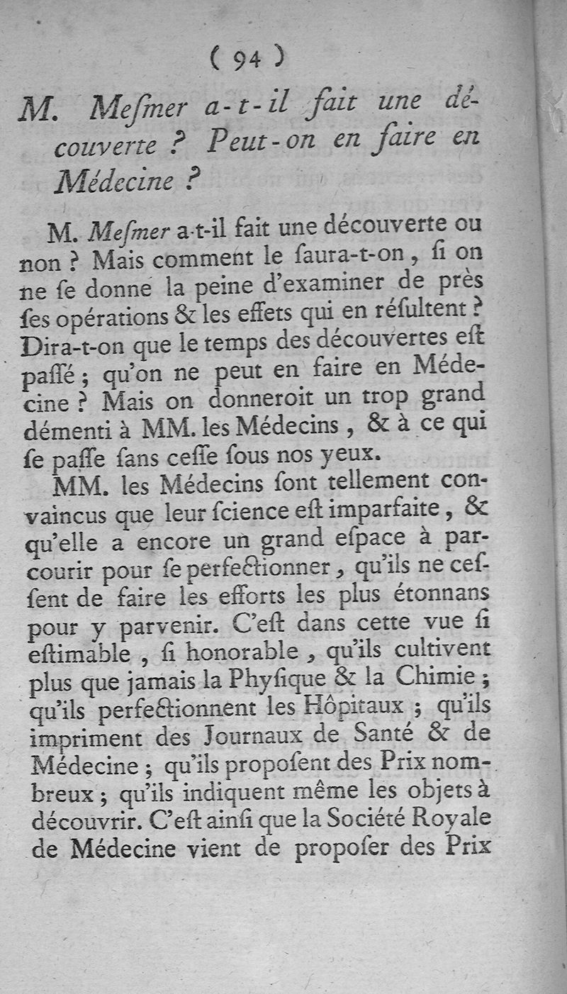 Recueil des pièces les plus intéressantes sur le magnétisme animal, dont le mémoire sur la découverte du magnétisme animal de M. F.A. Mesmer