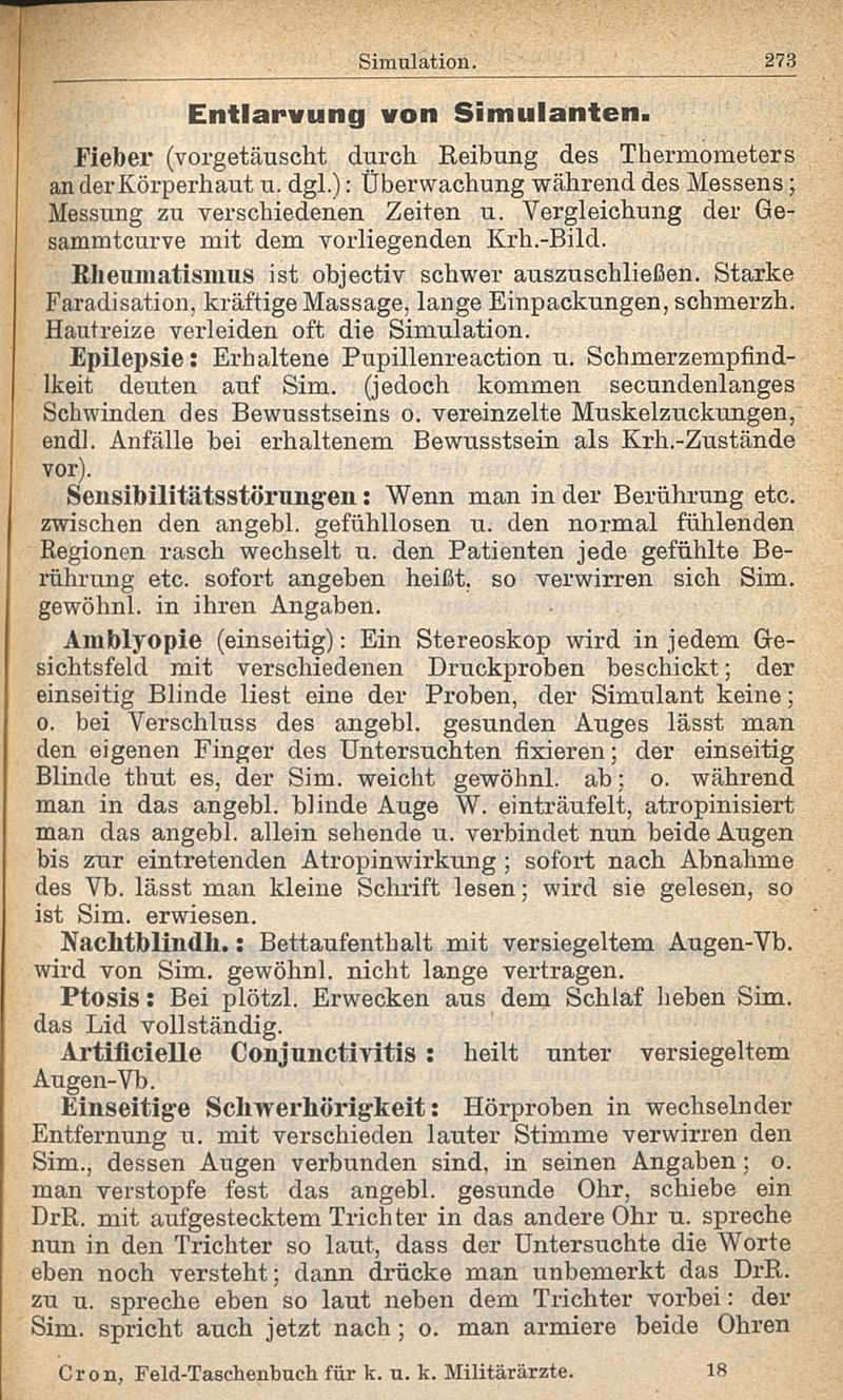 Feld-Taschenbuch für k. and k. Militärärzte von Regimentsartz Cron