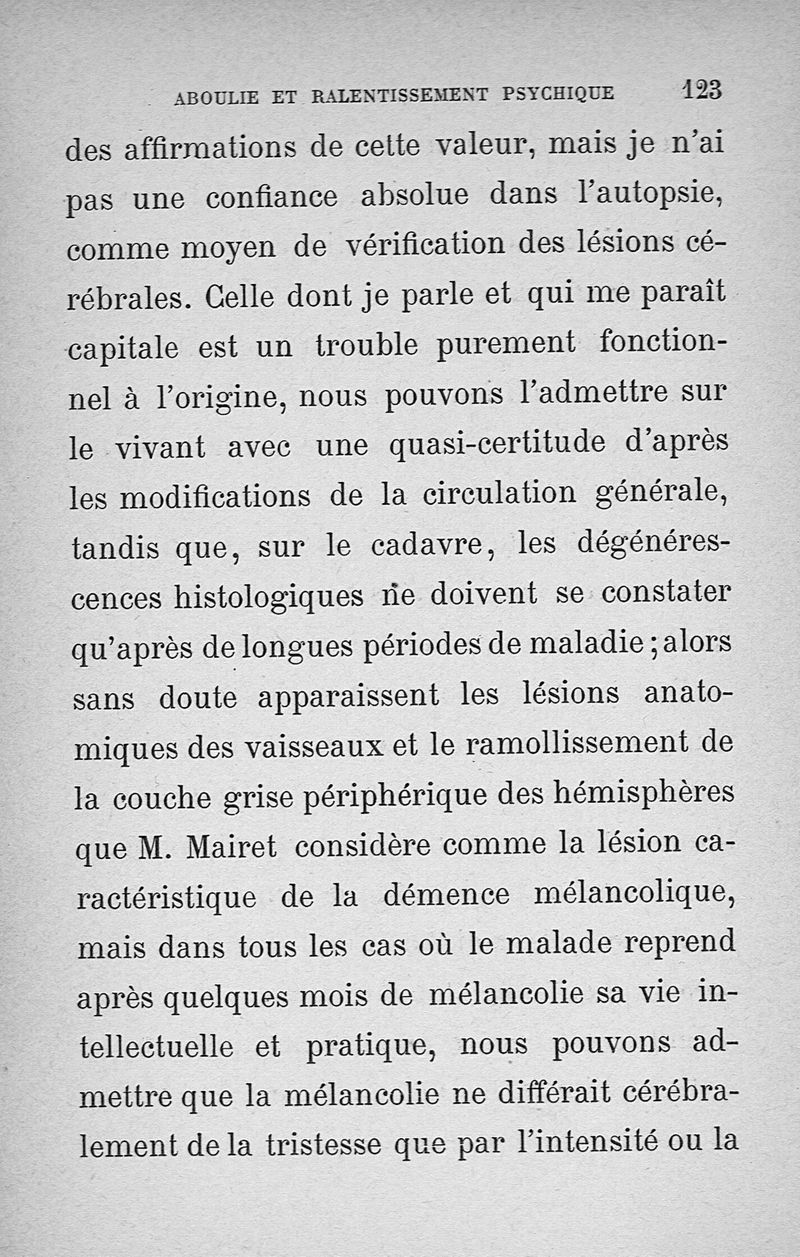 Les états intellectuels dans la mélancolie