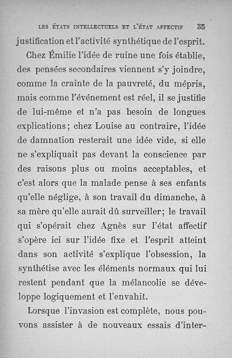 Les états intellectuels dans la mélancolie