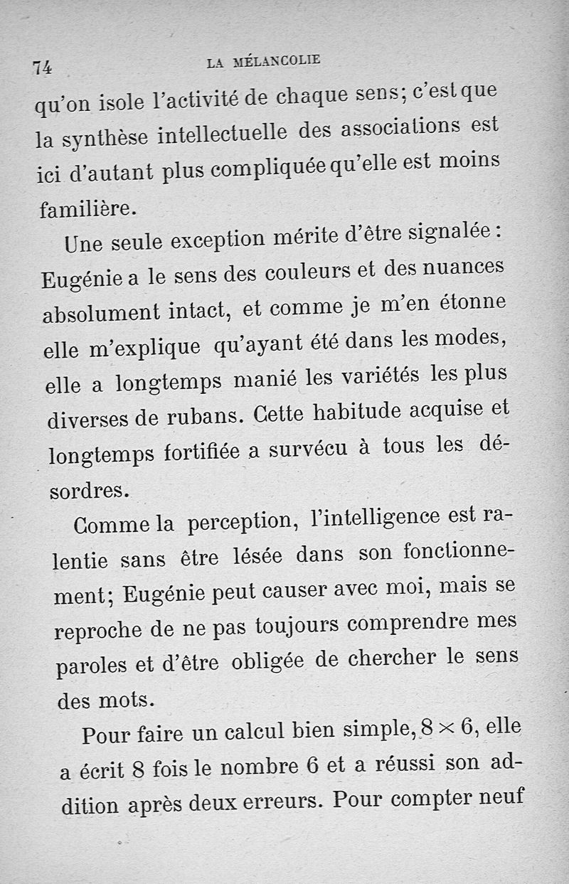 Les états intellectuels dans la mélancolie
