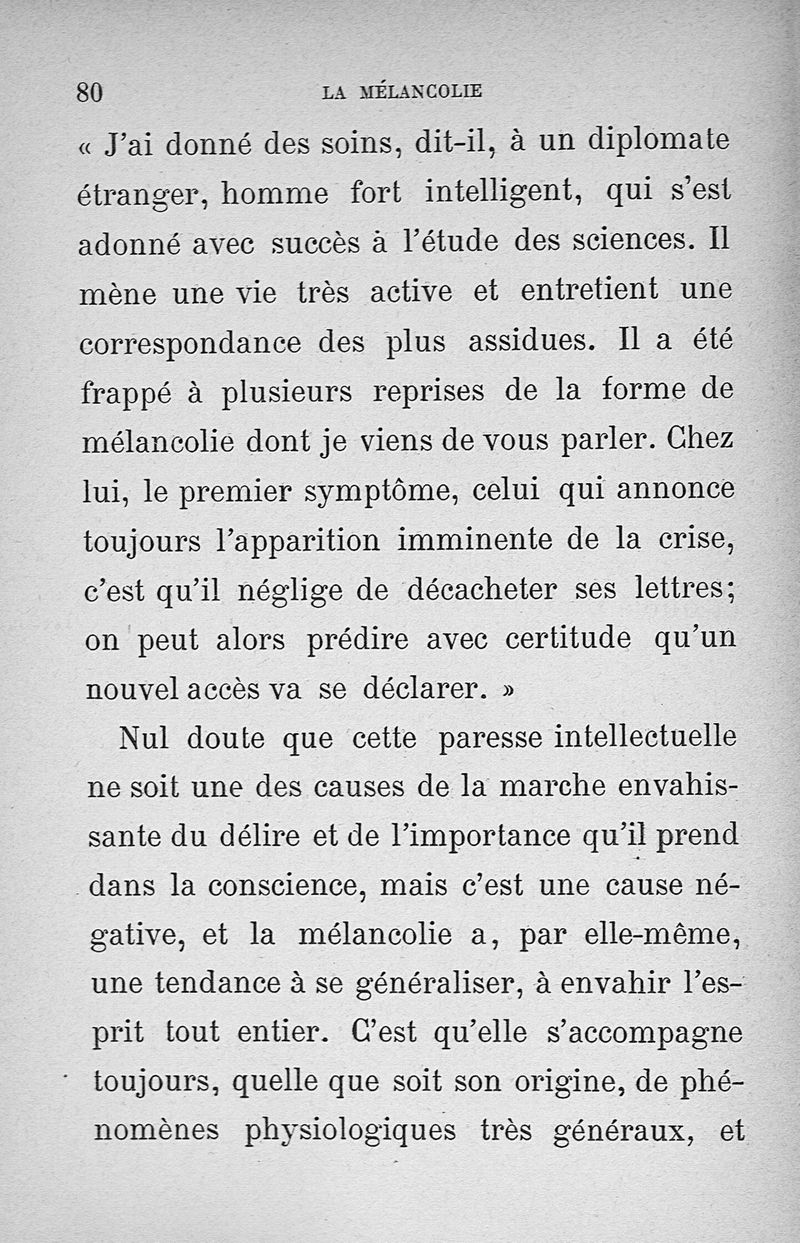 Les états intellectuels dans la mélancolie