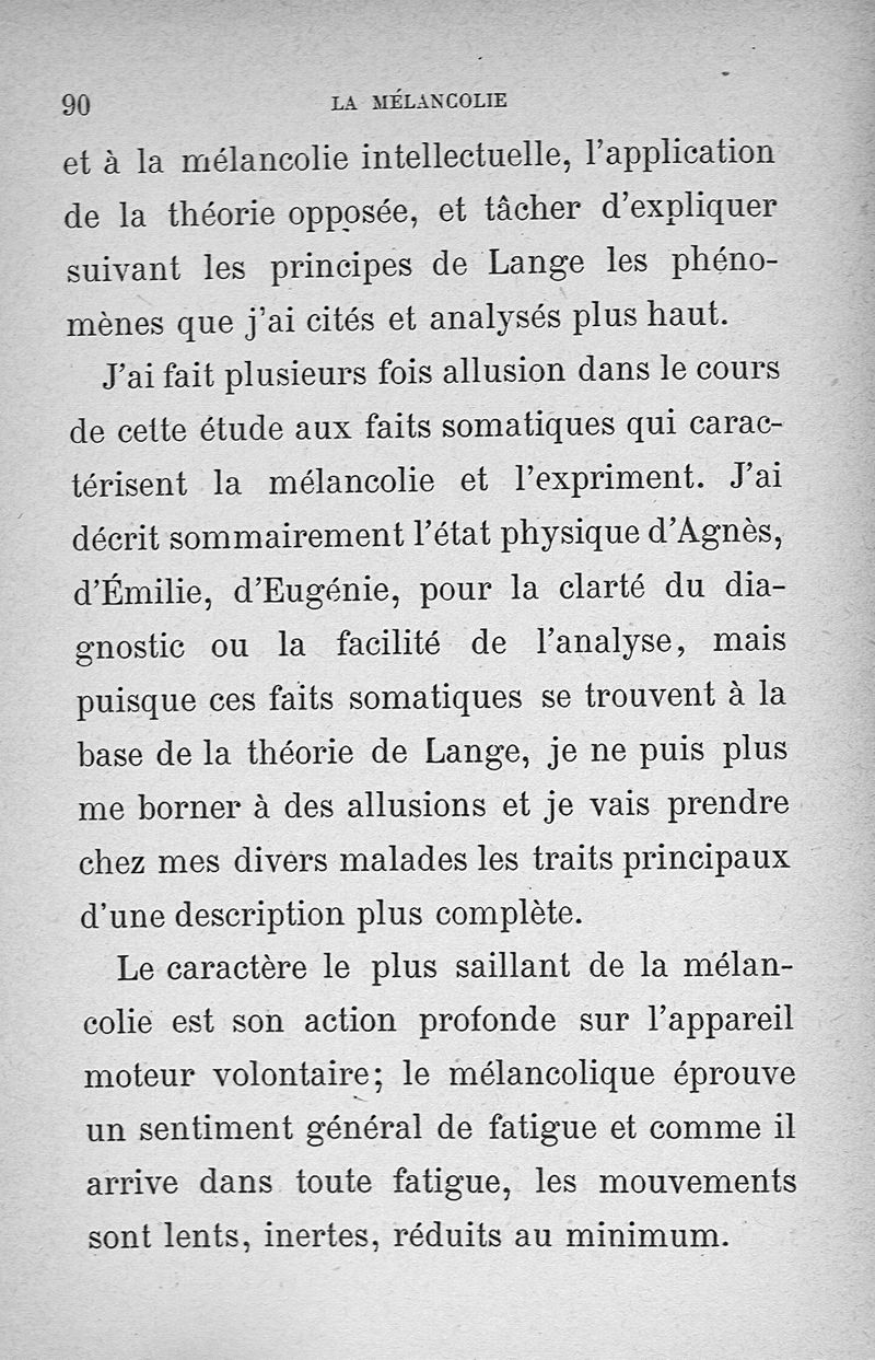 Les états intellectuels dans la mélancolie