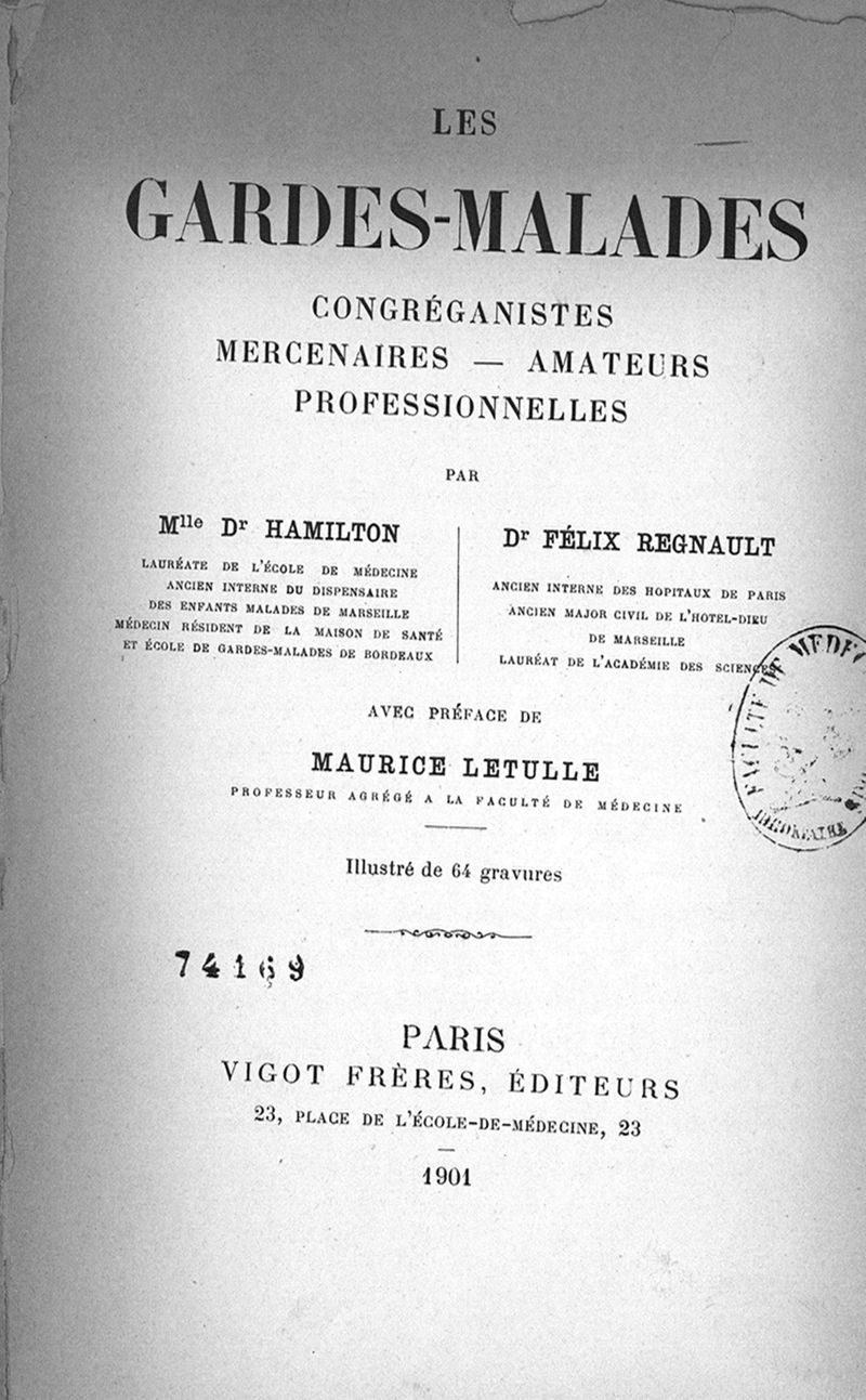 Les Gardes-malades congréganistes, mercenaires, amateurs, professionnelles, par Mlle Dr Hamilton,... Dr Félix Regnault,... Avec préface de Maurice Letulle,...