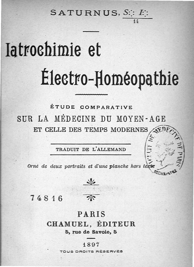 Iatrochimie et électro-homéopathie : étude comparative sur la médecine du Moyen-Age et celle des temps modernes