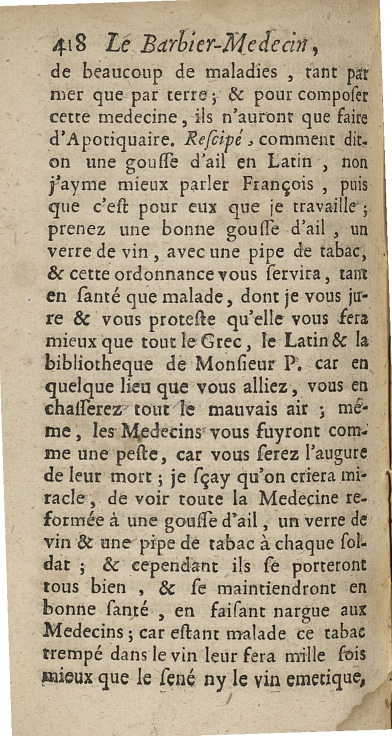 Le barbier medecin, ou les fleurs d'Hypocrate. Dans lequel la chirurgie a pris la queuë du serpent...par I.M.D.V.C.A.P.