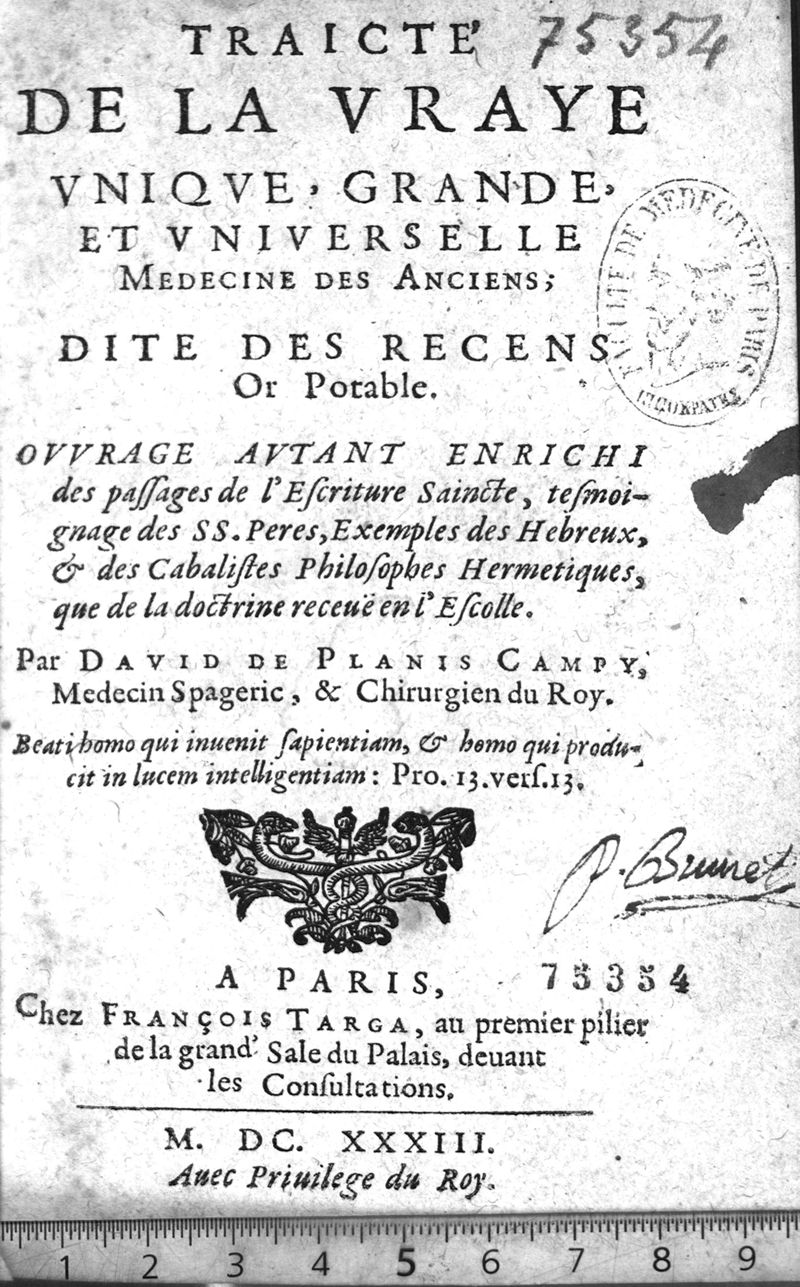 Traicté de la vraye unique grande et universelle medecine des anciens...dite des recens or potable..