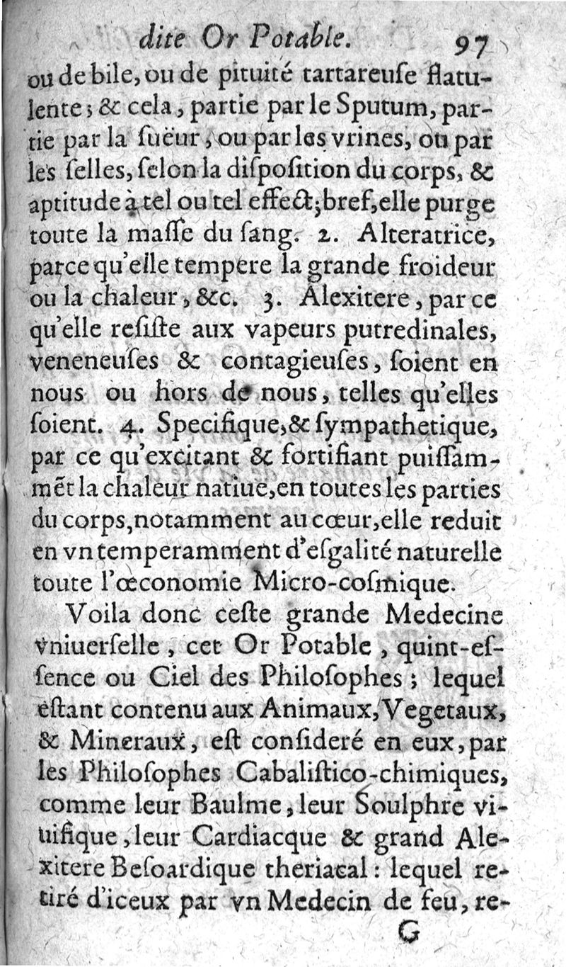 Traicté de la vraye unique grande et universelle medecine des anciens...dite des recens or potable..