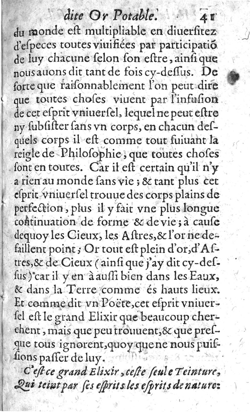Traicté de la vraye unique grande et universelle medecine des anciens...dite des recens or potable..