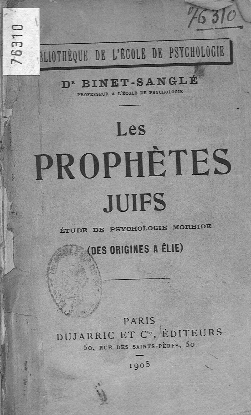 Les prophètes juifs : étude de psychologie morbide (des origines à Élie)
