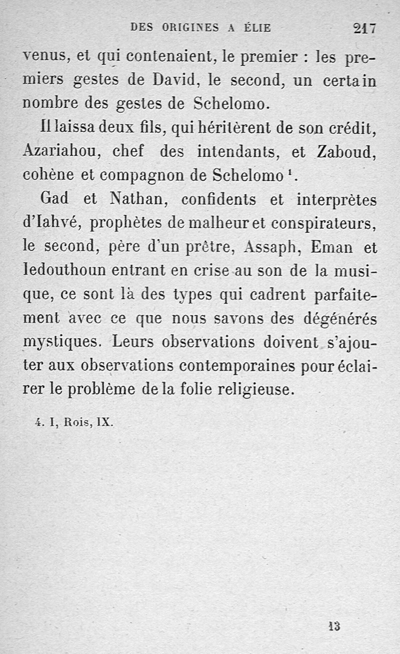 Les prophètes juifs : étude de psychologie morbide (des origines à Élie)