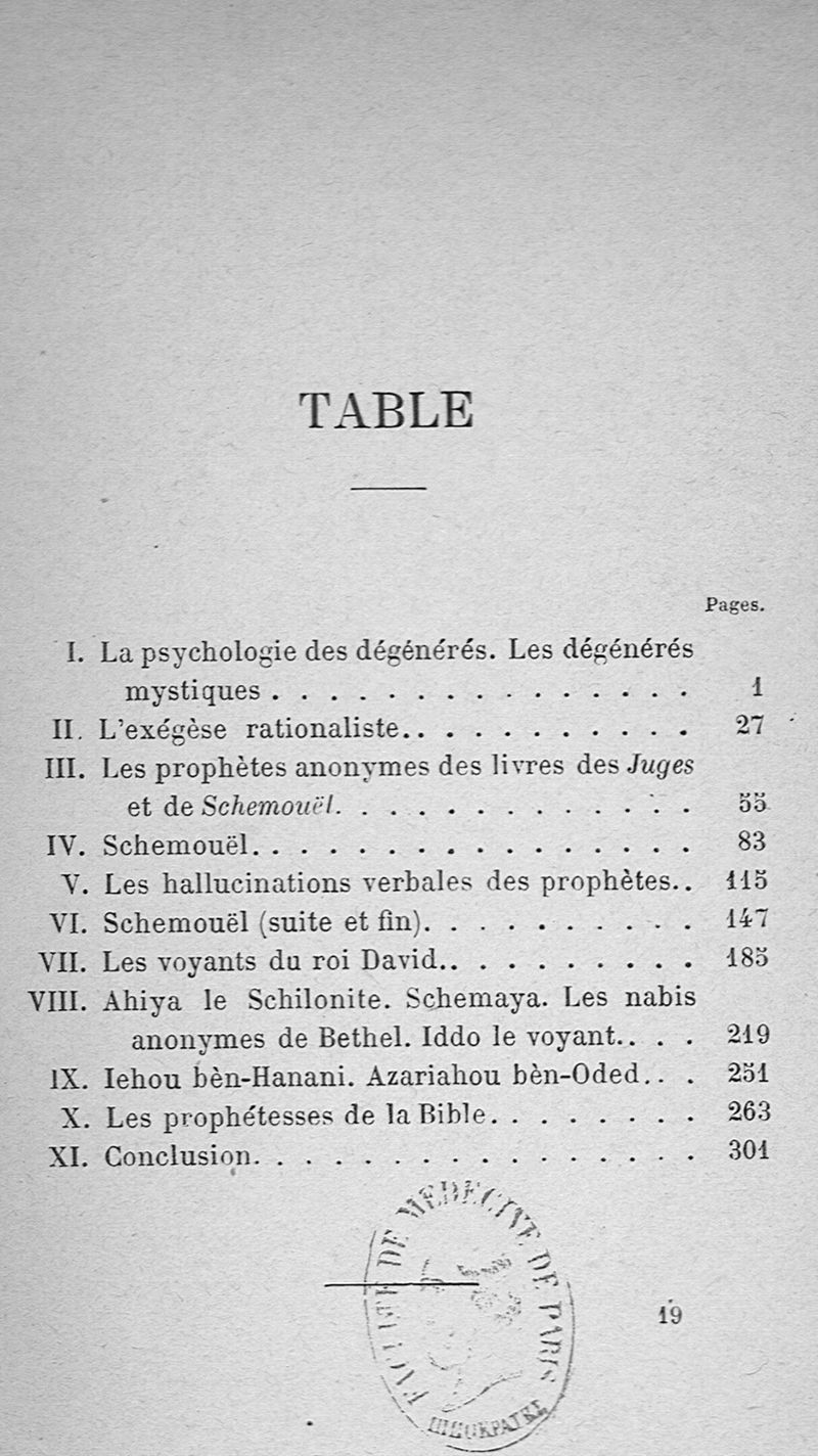 Les prophètes juifs : étude de psychologie morbide (des origines à Élie)