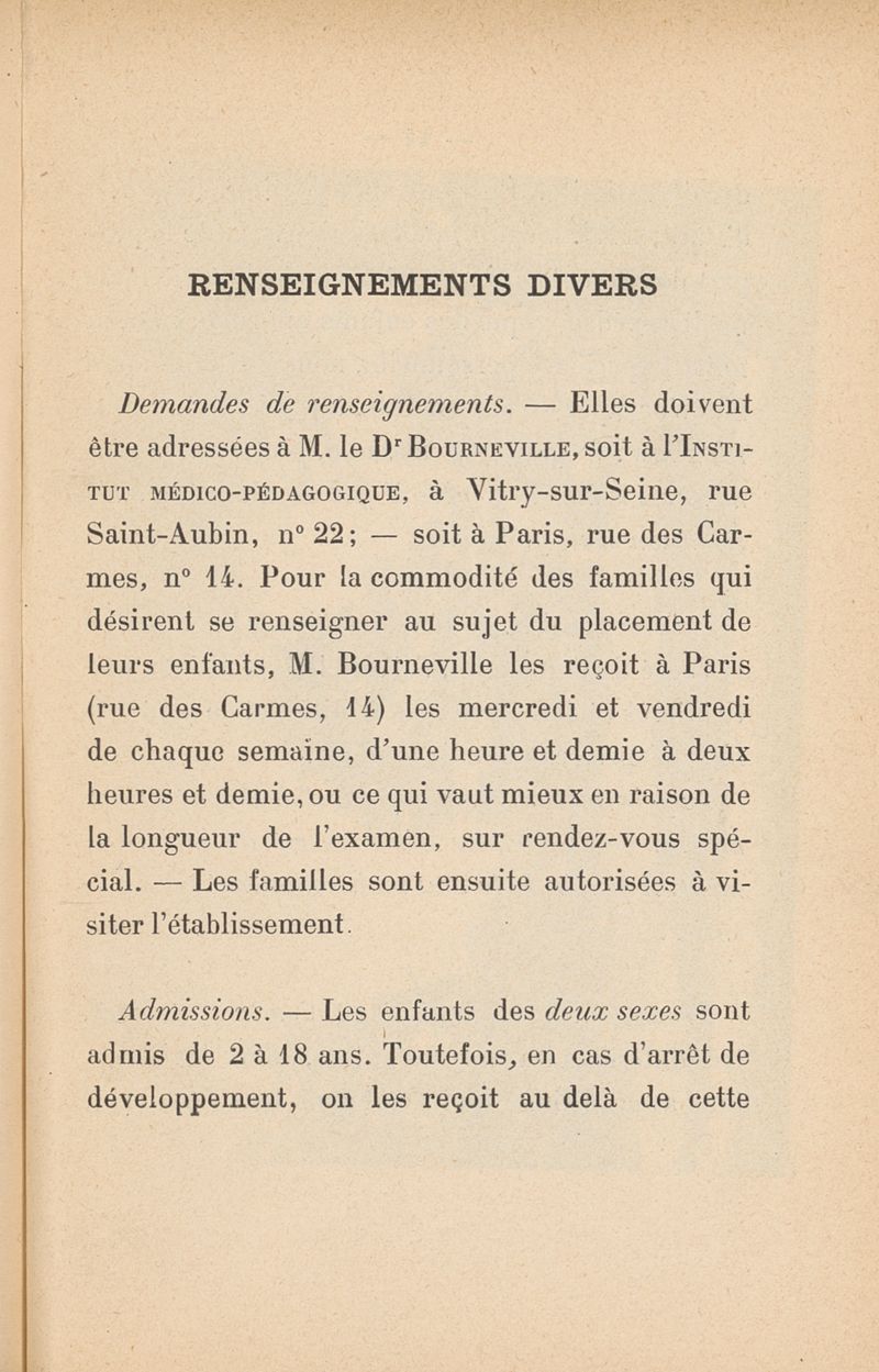 Institut médico-pédagogique.