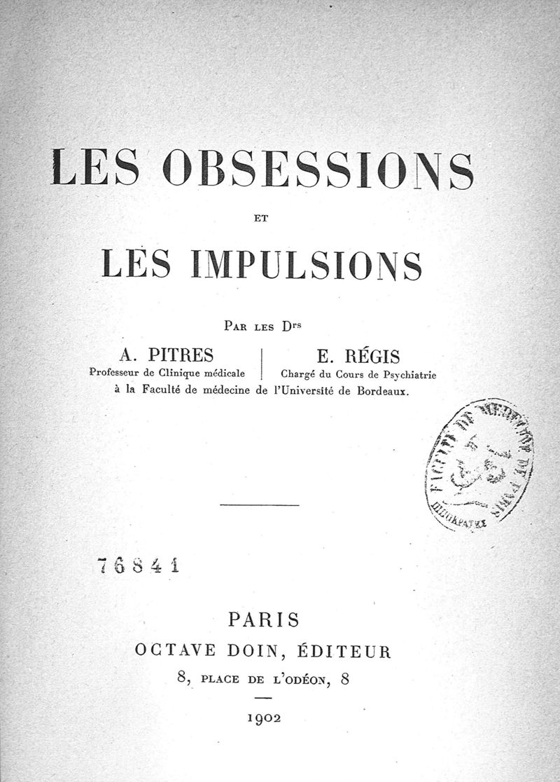 Les Obsessions et les impulsions, par les Drs A. Pitres,... E. Régis,...