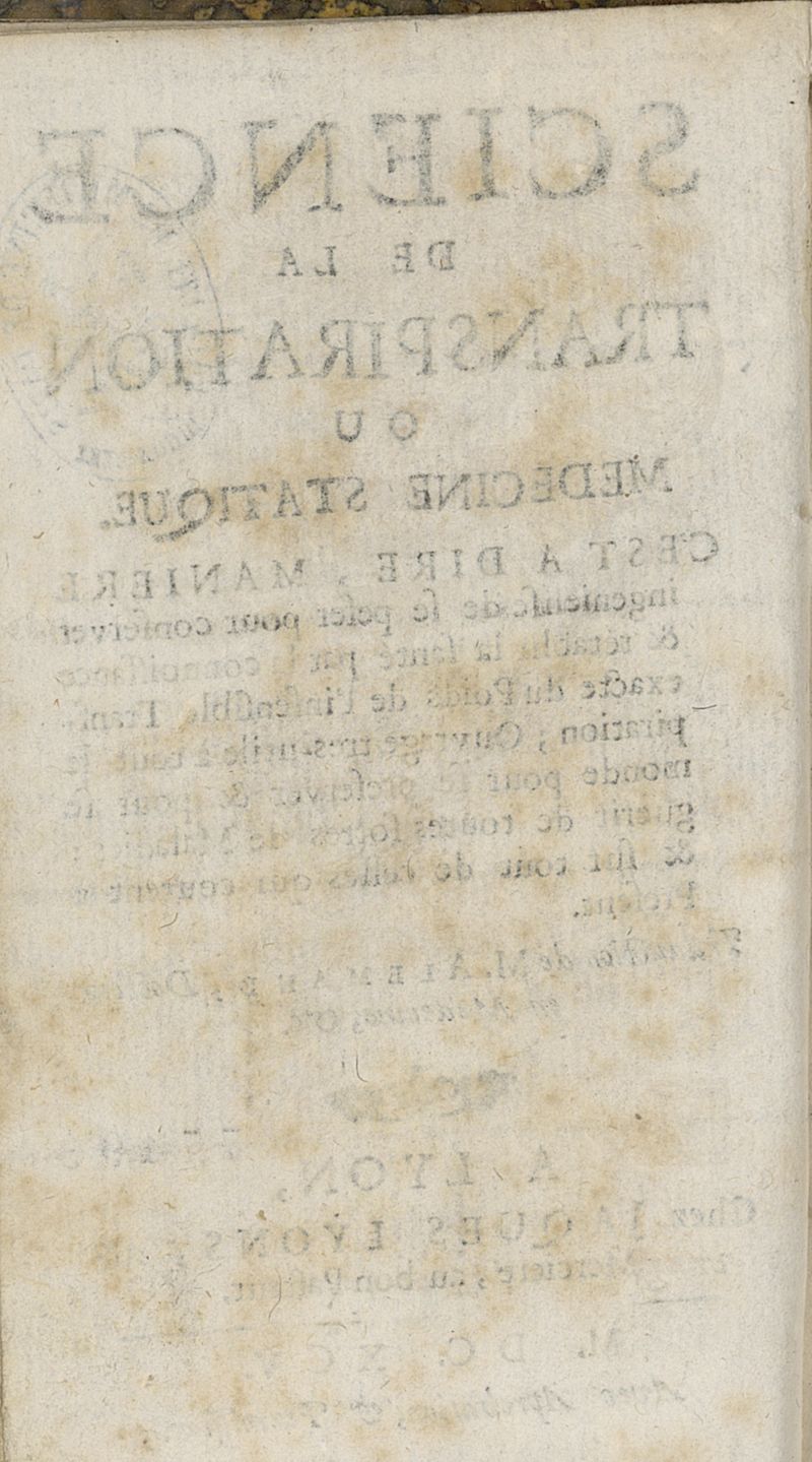 Science de la transpiration ou medecine statique...trad. de M. Alemand