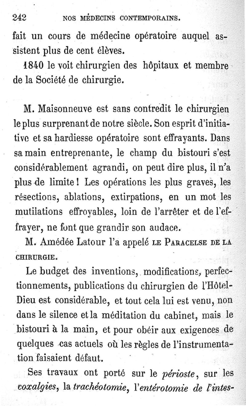 Nos médecins contemporains, par Paul Labarthe... Velpeau, Nélaton, Ricord, Trousseau, Tardieu, Bouillaud, Piorry, Wurtz, Robin, Pajot...